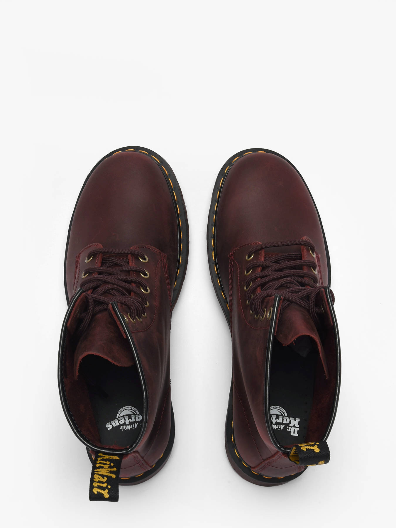 Les boots 1460 de Dr Martens pour homme en cuir Crazy Horse Rouge Cherry Red réinventent une icône avec caractère et authenticité. Leur cuir épais et texturé, à l’effet pull-up bicolore subtil, se patine avec le temps pour révéler un style unique, tandis que les finitions vieil or et les lacets ton sur ton apportent une touche héritage emblématique. La semelle à coussin d’air originelle assure confort et robustesse, complétée par les surpiqûres jaunes signature qui affirment l’identité Dr Martens. Classiques et intemporelles, ces boots deviennent un incontournable pour traverser les saisons avec assurance et style, de la ville aux escapades urbaines, affichant un look rebelle, affirmé et résolument rock.