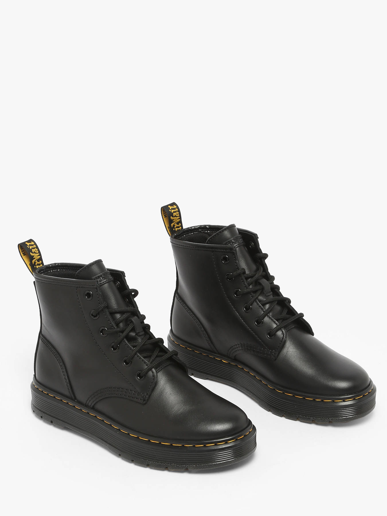 Les boots utilitaires Brookline Chukka de Dr. Martens allient robustesse et style décontracté dans une version à 6 œillets pensée pour le quotidien. Conçues en cuir Lusso ciré, légèrement texturé, elles offrent un confort immédiat dès la première utilisation tout en gagnant en caractère avec le temps. Leur design sobre et fonctionnel est rehaussé par des finitions monochromes, des œillets et lacets noirs, ainsi qu’une doublure textile pratique. Fidèles aux codes emblématiques de Dr. Martens, elles arborent la boucle d’enfilage signature au talon, des surpiqûres jaunes contrastantes et la semelle Brookline à coussin d’air, garantissant confort et durabilité. Ces boots incarnent un parfait équilibre entre praticité, robustesse et identité iconique, pour accompagner toutes vos aventures avec assurance et style.