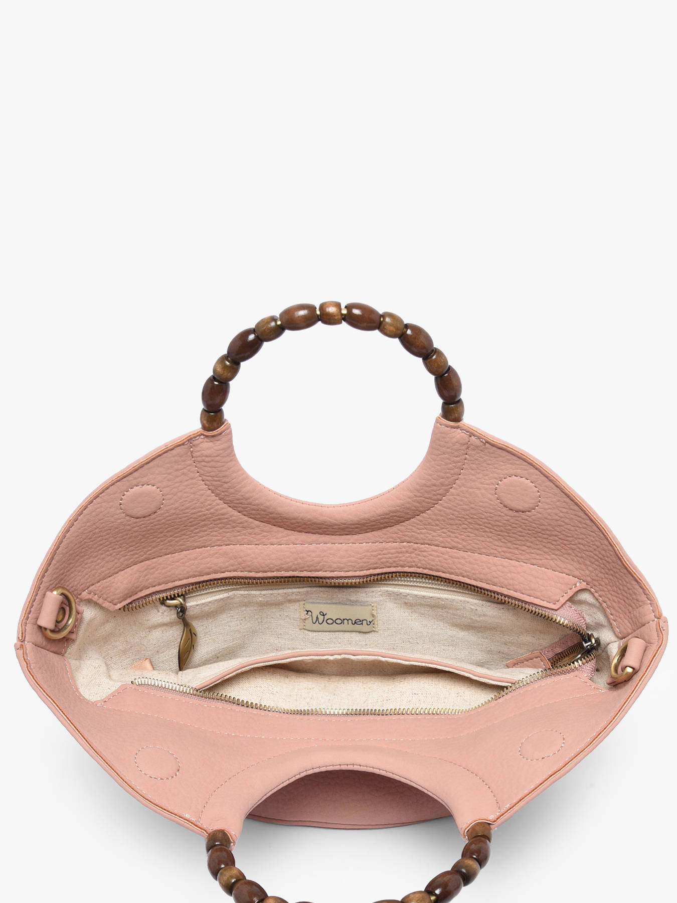 Le sac bandoulière WOOMEN petit format de la ligne Neflier Pearl allie élégance, praticité et engagement durable. Sa matière principale en polyuréthane, composée à 58?% de matières recyclées, associée à la doublure en coton et lin, assure légèreté et solidité. La poignée recouverte de perles en bois apporte originalité et raffinement au modèle. Ce sac dispose d’une fermeture zippée, d’une poche zippée au dos, d’une bandoulière amovible en polyuréthane pour un porté modulable, ainsi qu’à l’intérieur d’une poche zippée et d’une poche plaquée pour organiser facilement vos essentiels. Le logo en résine doré complète le design et sublime vos tenues.