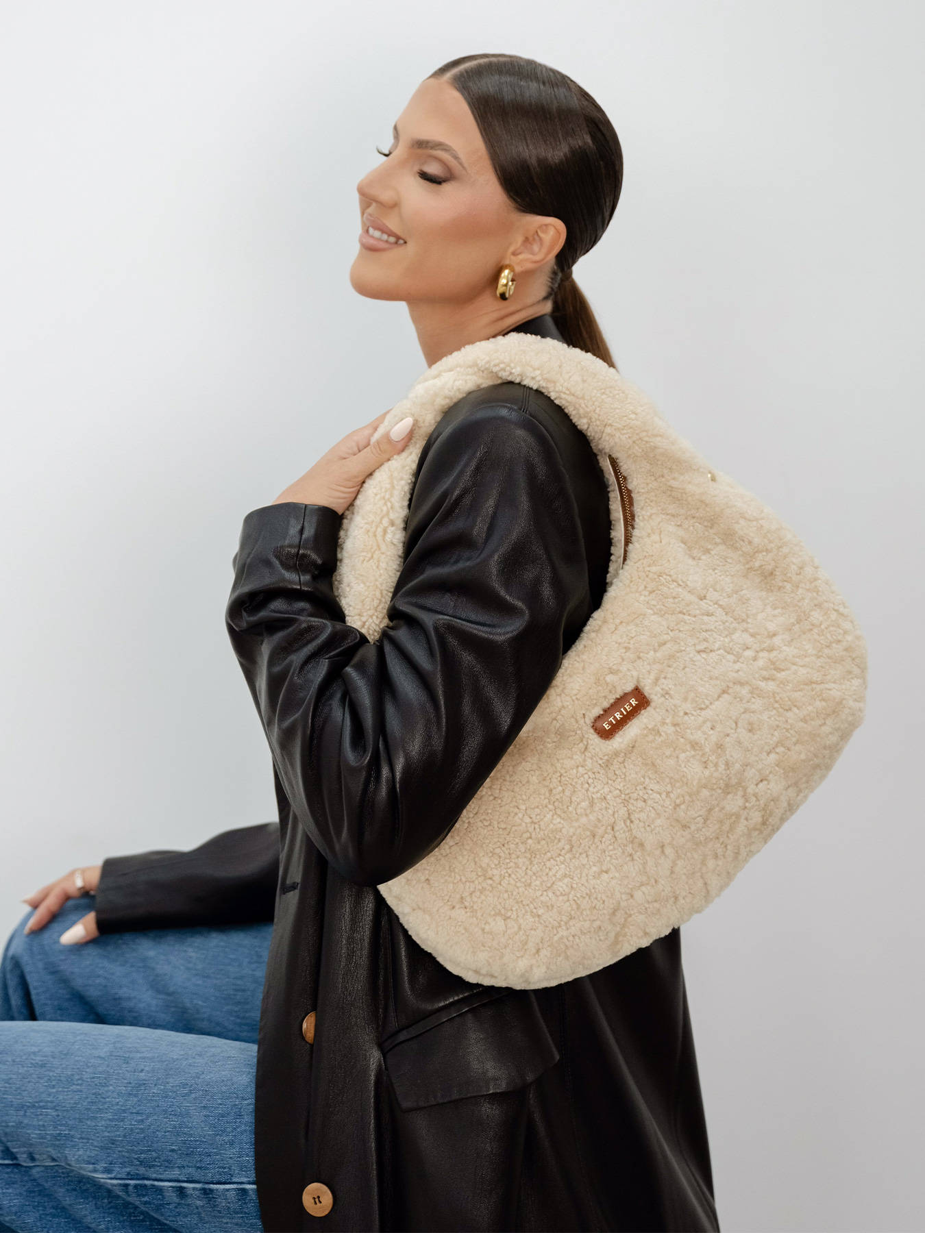 La anse twistée et les bijoux métalliques délicats perforant les côtés créent un look contemporain et original. À l’intérieur, une étiquette en cuir célèbre cette collaboration exclusive, et le curseur en cuir de la fermeture zippée, orné du bijou ETRIER, ajoute une note raffinée avec des étoiles embossées au verso, symbolisant la communauté fidèle de Babyatoutprix, un clin d’œil subtil mais élégant.