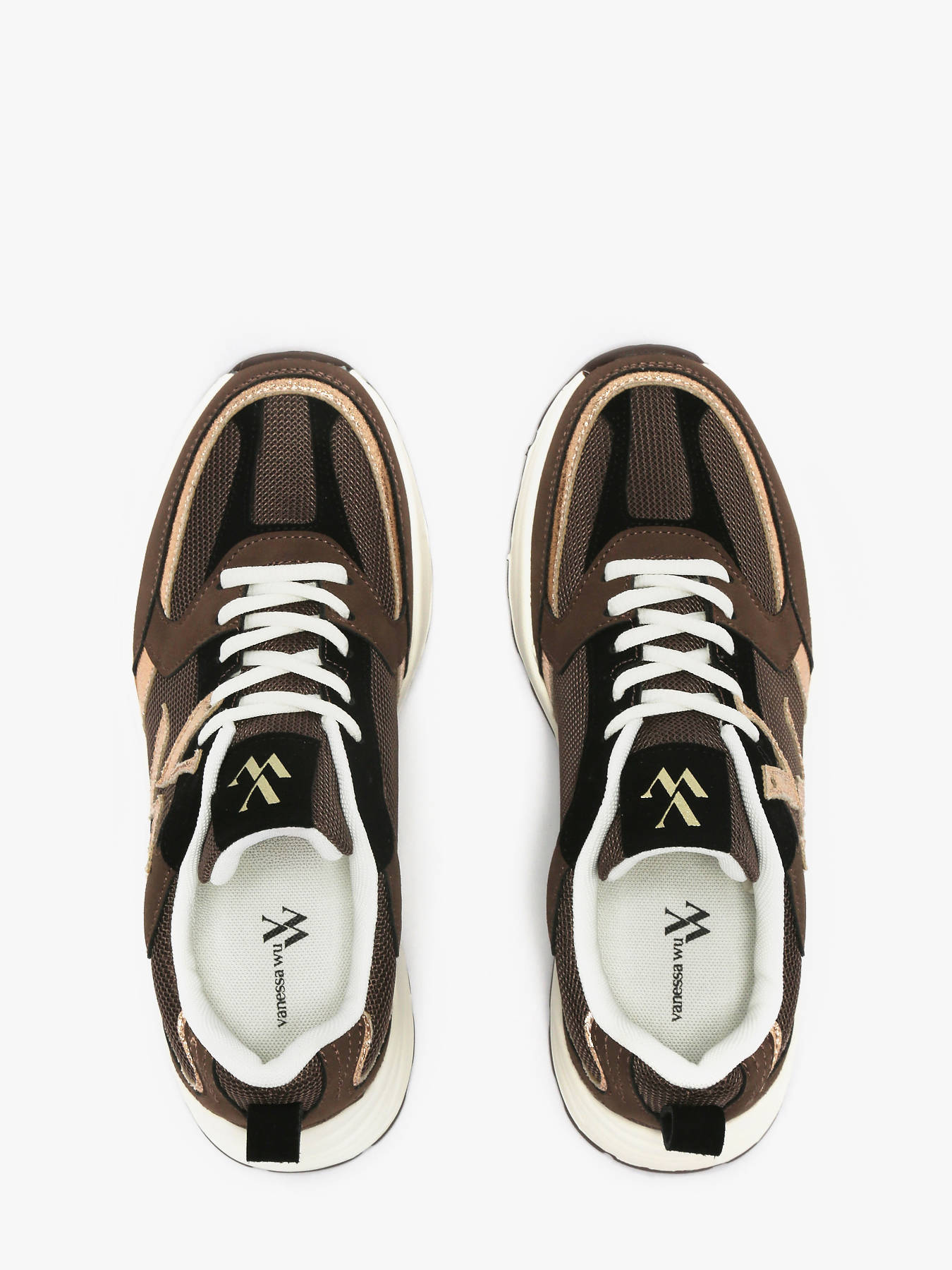 Les baskets Jillian de Vanessa Wu revisitent l’esthétique running avec une touche élégante et contemporaine. Réalisées en mesh marron foncé avec des empiècements en suédine effet peau de pêche, elles se distinguent par leurs liserés dorés texturés et leur monogramme raffiné. Le contrefort et le bout renforcé assurent maintien et confort, tandis que la semelle intérieure amovible à microbilles offre un effet massant agréable au quotidien. Leur semelle rétro running complète le design, pour un look sportif et ultra-tendance. Un modèle phare qui illustre parfaitement l’esprit de Vanessa Wu : des créations stylées et modernes à prix accessibles.